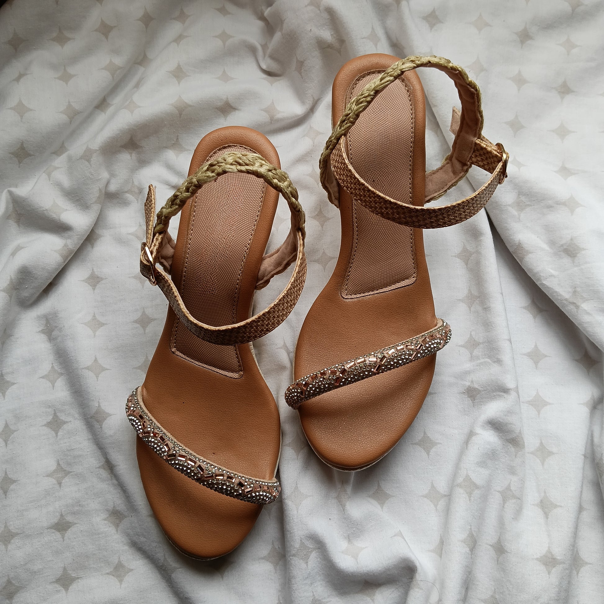 La pulsera trenzada con hebilla ajustable aporta un toque artesanal y asegura sujeción, mientras que la cuña ligera estiliza la silueta sin sacrificar comodidad. Con Auréa, caminarás con confianza y gracia, desde un día soleado de verano hasta una cena especial bajo las estrellas.