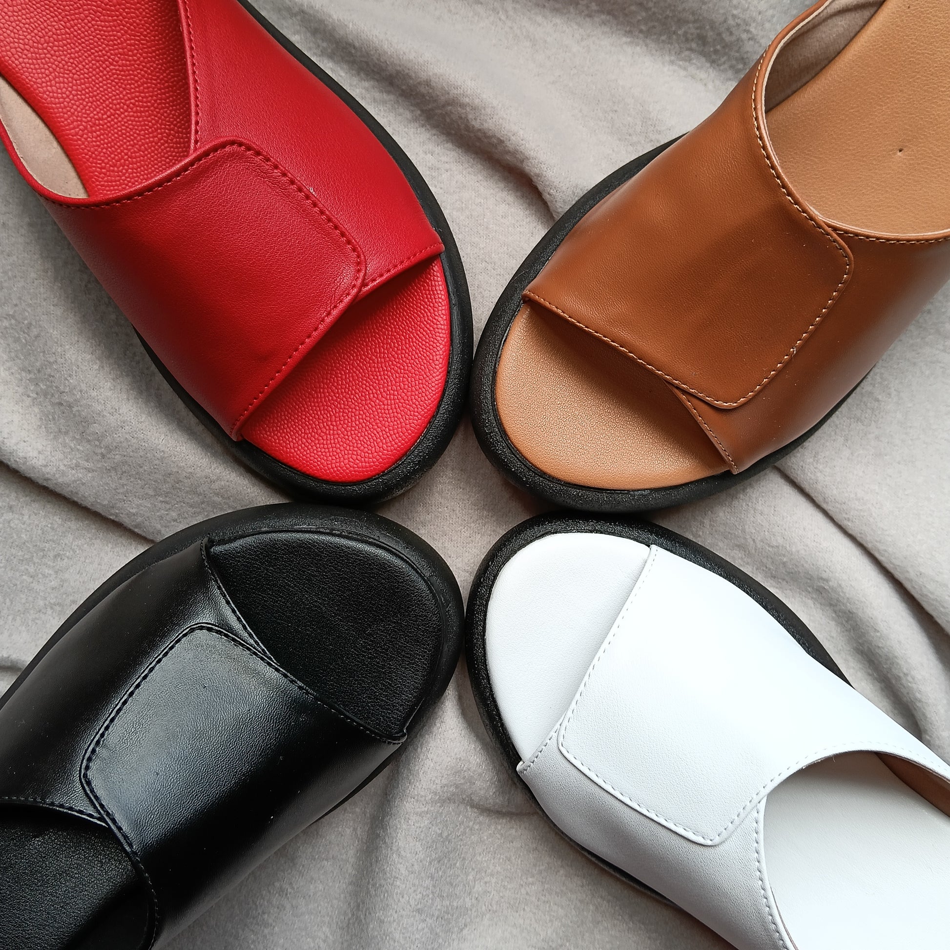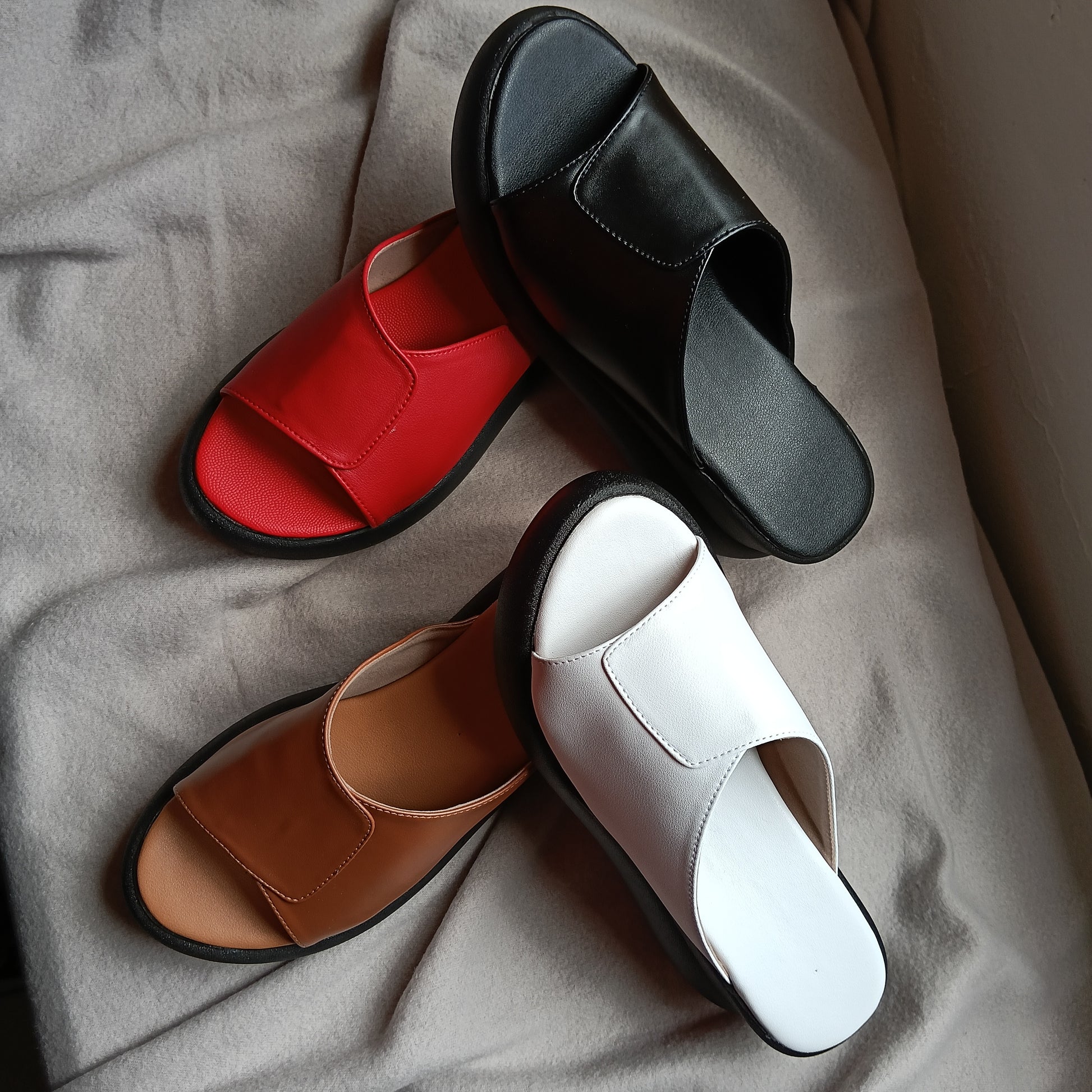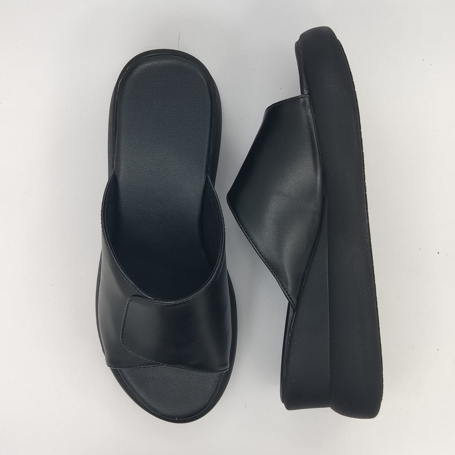 La Boca de Pez es una sandalia ortopédica tipo mule con plataforma que combina un diseño sencillo con una gran comodidad. Su corte frontal abierto da frescura al pie y el acabado en cuero sintético negro aporta un estilo sobrio y versátil.