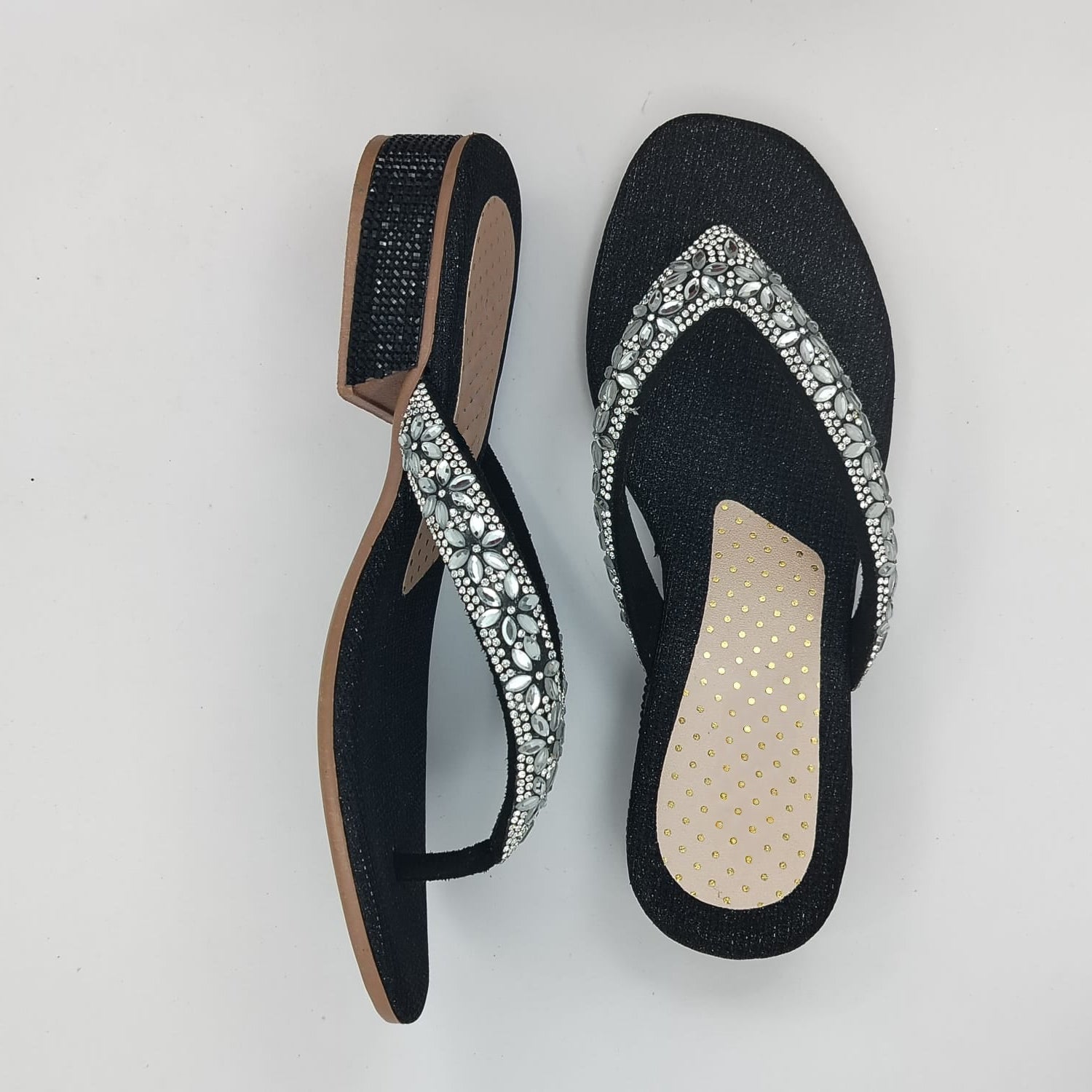 Gracias a su plantilla acolchada y su suela antideslizante, ofrecen la mezcla perfecta entre estilo y practicidad. Ideales para fiestas, reuniones o para elevar un look casual con un toque de brillo.